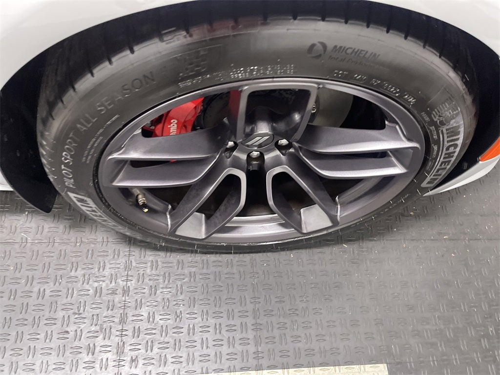 Step into a driver-focused cockpit with **Black Artificial Leather Seats**, **heated front seats**, **ventilated front seats**, **heated 2nd row seats**, **power front driver/passenger seats** with 4-way lumbar, and room for five with **16.5 cu.ft. trunk space**. Stay connected with the **Uconnect 4C system** on an **8.4-inch touchscreen**, **6 speakers**, **Apple CarPlay/Android Auto**, **SiriusXM**, **Bluetooth®**, and **steering wheel audio controls**. Dominate with the **Widebody Package** including **Brembo 6-pot fixed front caliper brakes**, **adaptive damping suspension**, **Widebody competition suspension**, **20-inch x 11-inch Devil's Rim aluminum wheels**, **P305/35YR20 Goodyear Eagle F1 tires**, **body-color fender flares**, **Plus Group** with power tilt/telescope steering column, **blind spot & cross path detection**, **ParkView backup camera**, **brake assist**, **electronic stability control**, **fully automatic headlights**, **auto-dimming exterior driver mirror**, **auto-adjust in reverse exterior mirrors**, **power sunroof**, and **performance shift indicator**. The aggressive exterior demands attention with **black badges**, **heated power mirrors** with courtesy lamps, and **SRT styling**ideal for **speed demons**, **car collectors**, or **performance seekers**.
